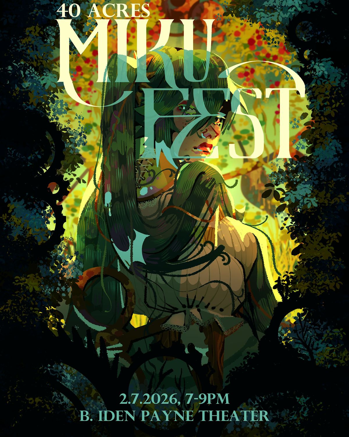 40Acres Mikufest! ~2nd Live`~ is a FREE, fanmade event hosted by students at UT, featuring Hatsune Miku and other Vocaloids! This year, our concert is clockwork-themed.