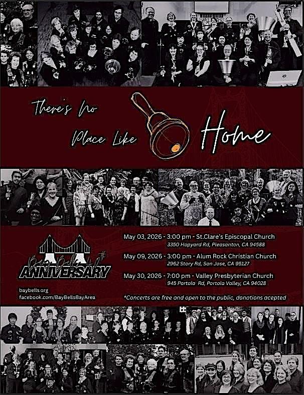 Bay Bells celebrates its 40th Anniversary with a special concert series across the Bay Area. This premier community handbell choir presents a vibrant program of lively showpieces, expressive sacred and classical works, familiar favorites, and patriotic music honoring America’s 250th anniversary. Featuring collaborative works with instrumentalists and vocalists, this festive performance offers an inspiring musical experience for all ages. Admission is free, donations welcome. Just show up at the door!
