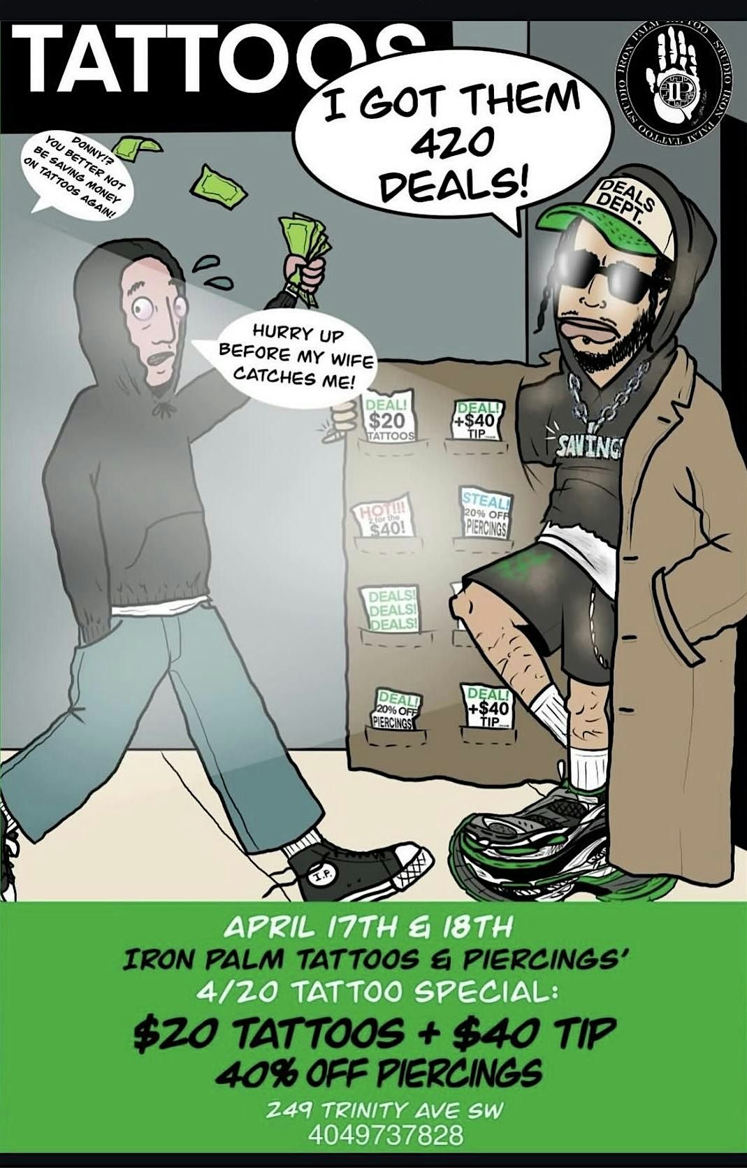 420 Atlanta Tattoo Special: $20 Tattoos & 40% Off Body Piercings