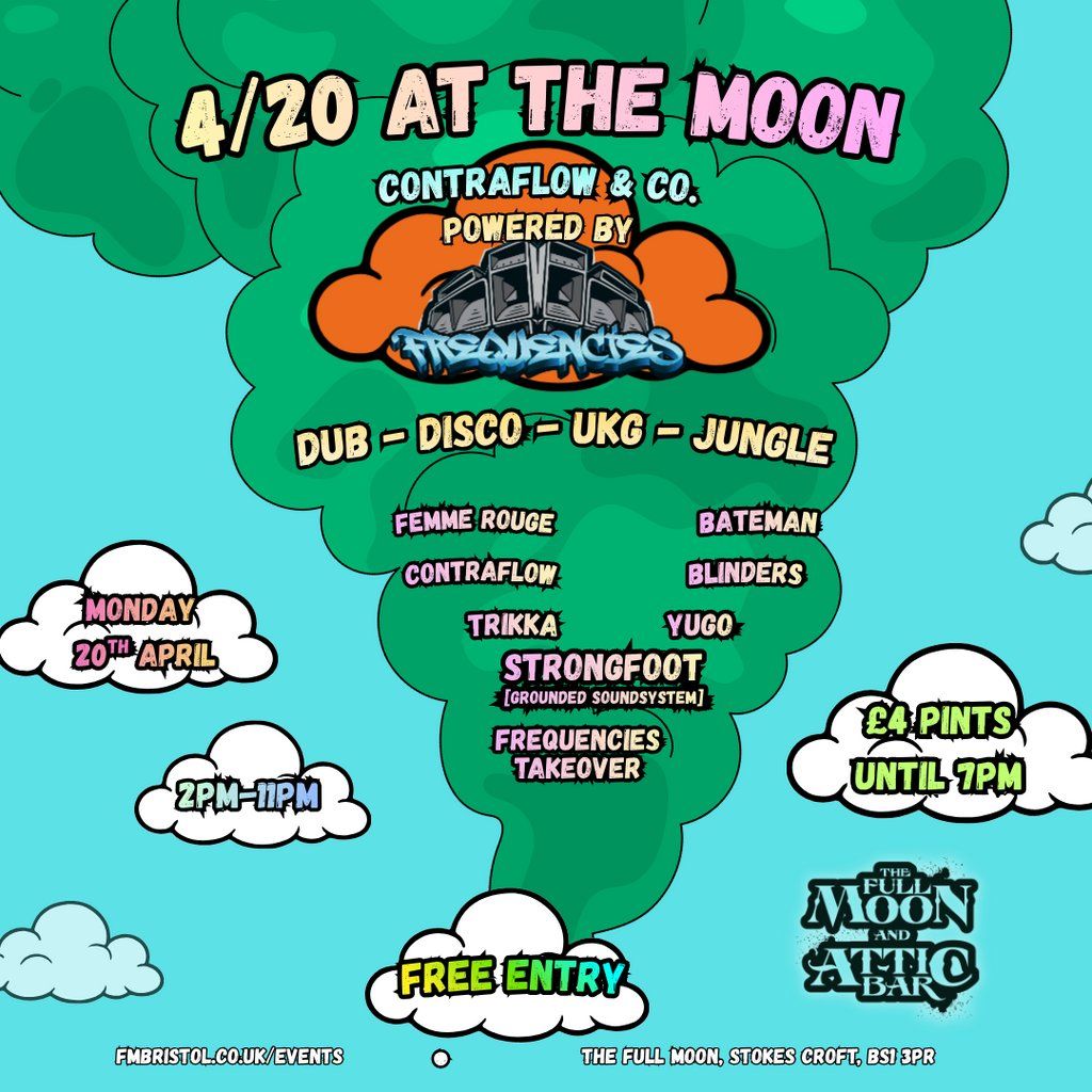 Come celebrate 4/20 in Full Moon tradition, in the courtyard with Frequencies Soundsystem, Bateman, Contraflow, Femme Rouge & More!Artists