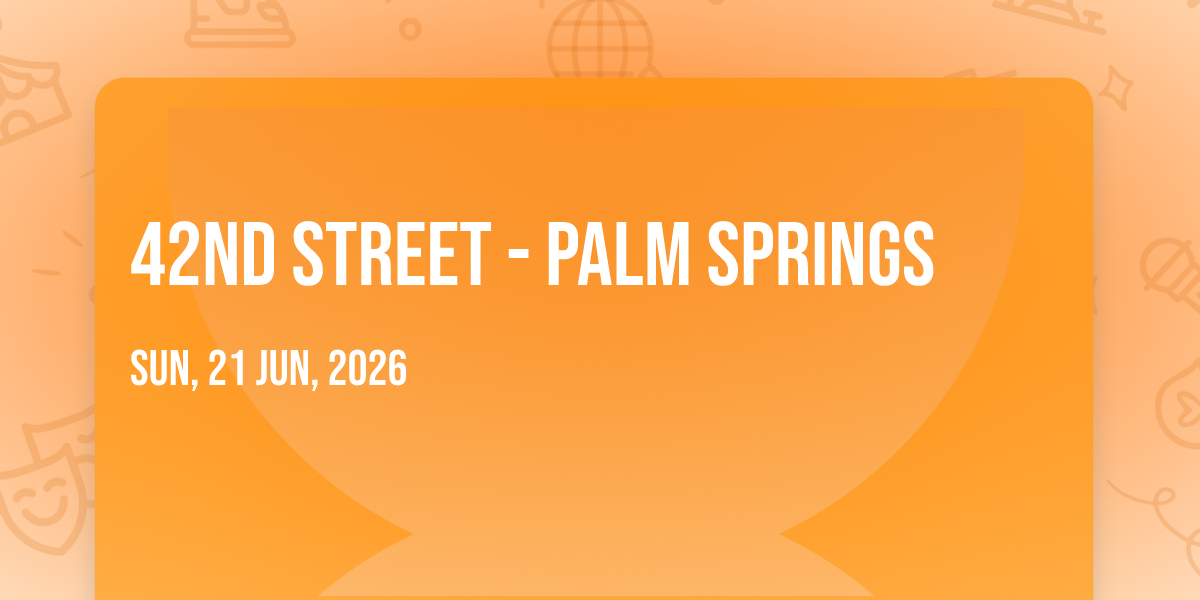 📍 Location: 33.8227, -116.546🌟 Step into a world of wonder at 42nd Street - Palm Springs, where extraordinary moments await! 🏛️ Located at Plaza Theatre - Palm Springs in dynamic Palm Springs, CA, this event will become the talk of the town. 📅 Join us on June 21st, 2026 at 10:00 PM for a celebration that defies the ordinary. ✨ This curated experience brings together the best of entertainment, culture, and community spirit. Every detail has been thoughtfully planned to ensure an unforgettable experience for all our guests. 🎯 Take advantage of this opportunity to be part of something special. 🎊 Early registration is recommended as space is limited!