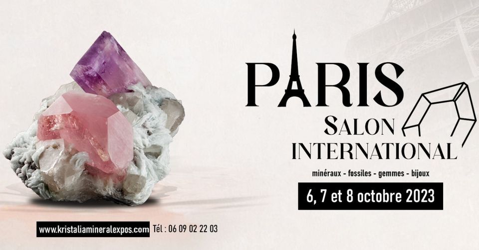 L'édition d'Automne du Salon international des Minéraux, Fossiles, Gemmes et Bijoux de Paris (75) aura lieu du 6 au 8 octobre 2023 à l’Institut National du Judo ??Toute l’équipe Kristalia Mineral Expos et les exposants seront heureux de vous accueillir à l'occasion de cette 45ème édition !