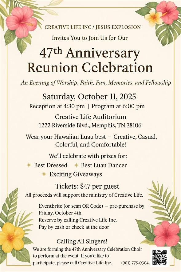 Come enjoy a Luau-themed celebration filled with fellowship, fun, tropical flavors, and thanksgiving for God’s blessings through the years. 🌴🌸🌊