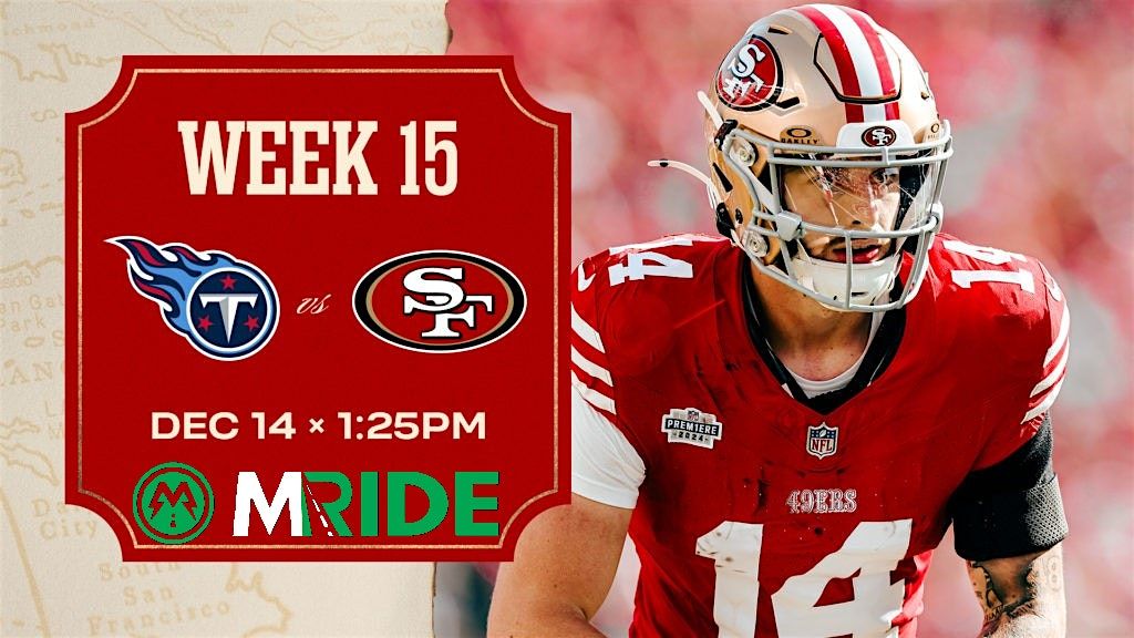 49ers vs TENNESSEE TITANS SHUTTLE BUS FROM SAN FRANCISCO (Marina District) TO LEVI'S STADIUM (ROUNDTRIP) SUNDAY 12/14/2025 10:00AM DEPARTURE FROM WESTWOOD