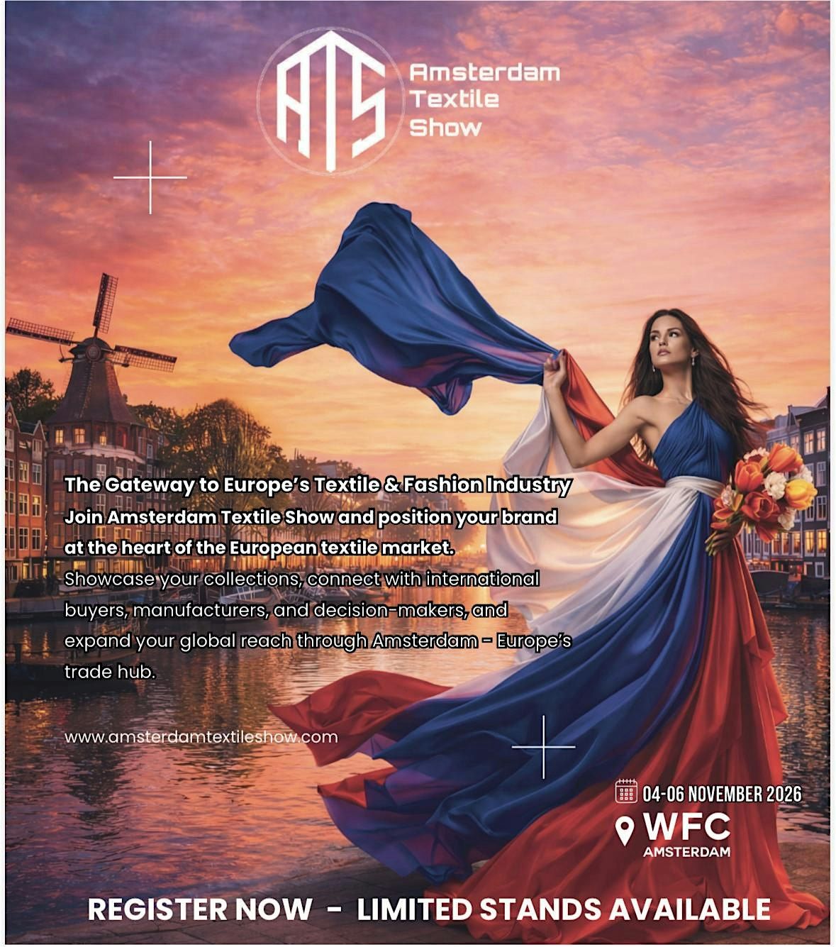 The Amsterdam Textile Show is a premier international textile and fashion sourcing fair held annually in Amsterdam, Netherlands. It brings together global suppliers and professional buyers from across the textile industry—including fabrics, yarns, ready-to-wear, denim, leather, footwear, home textiles, accessories, and components—making it one of Europe’s key platforms for trade and collaboration. The event showcases the latest trends, innovations, and sustainable solutions, and provides extensive B2B networking and sourcing opportunities for exhibitors and visitors alike. The 4th edition is scheduled from 4 to 6 November 2026 at the prestigious World Fashion Centre Amsterdam.