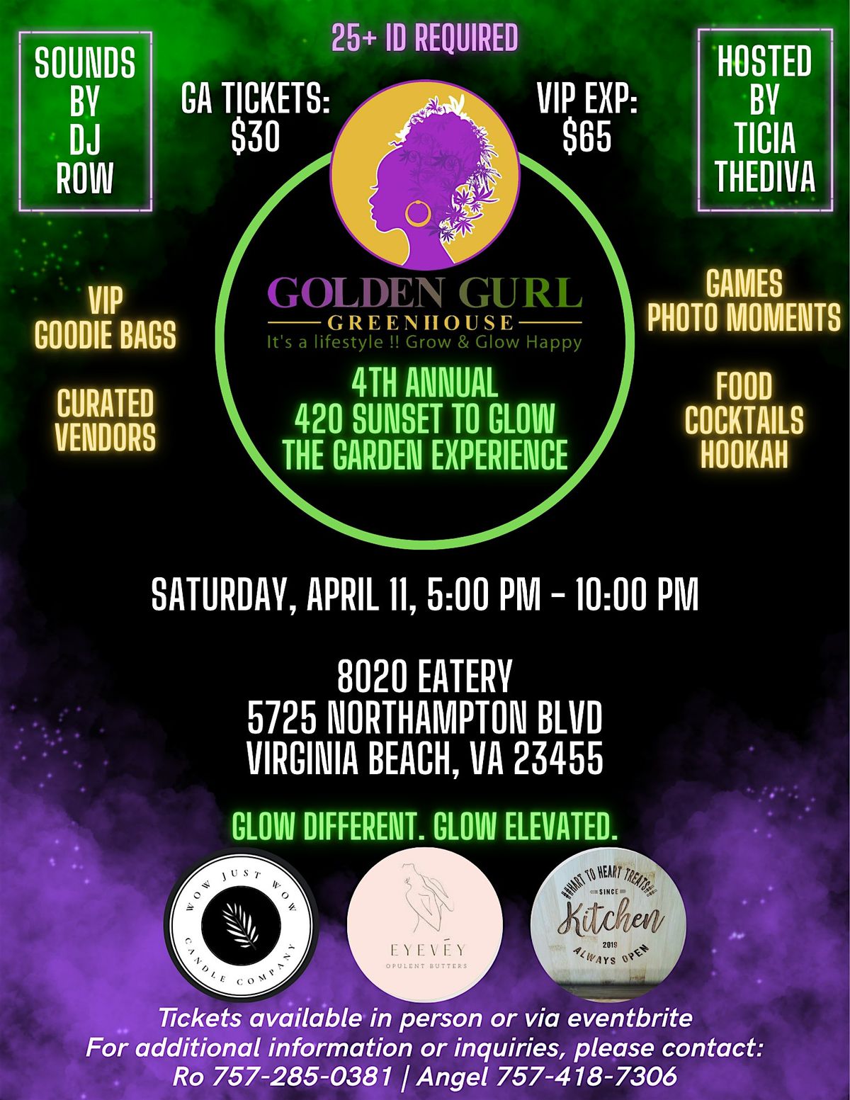 Golden Gurl Greenhouse proudly presents The 4th Annual 420 Sunset to Glow: The Garden Experience, an elevated, immersive evening curated exclusively for mature adults 25+.