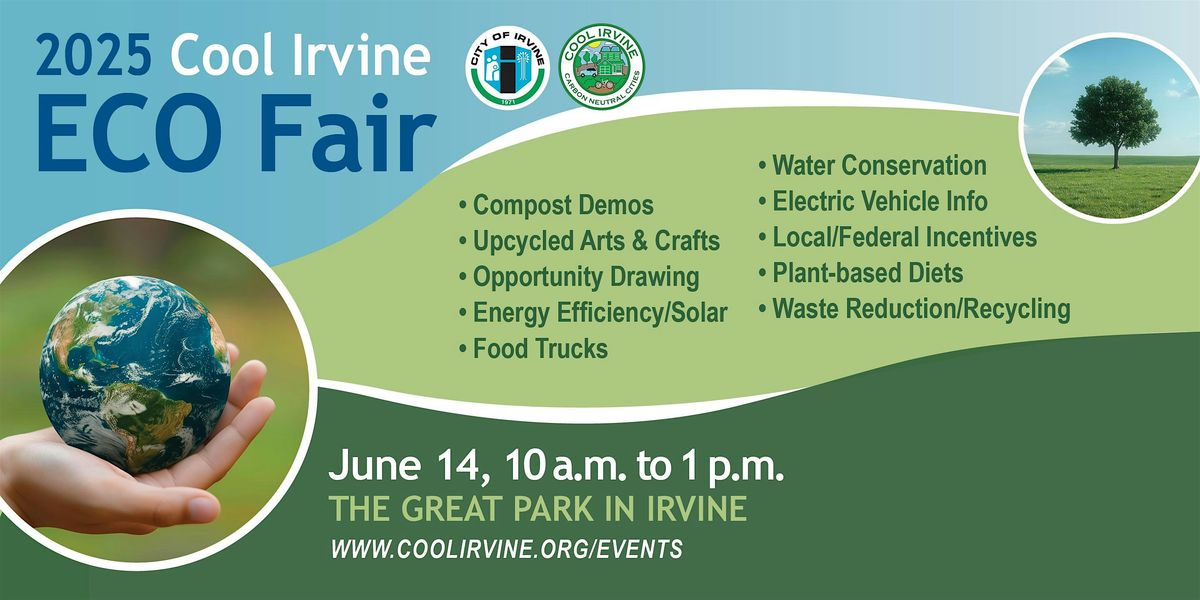 ? Join us for the 2025 Cool Irvine Eco Fair, a fun, family-friendly event celebrating planet-friendly living and climate action! Hosted by Cool Irvine in partnership with the City of Irvine and community partners, this interactive fair will feature compost demos, upcycled arts & crafts, food trucks, and exciting opportunity drawings.