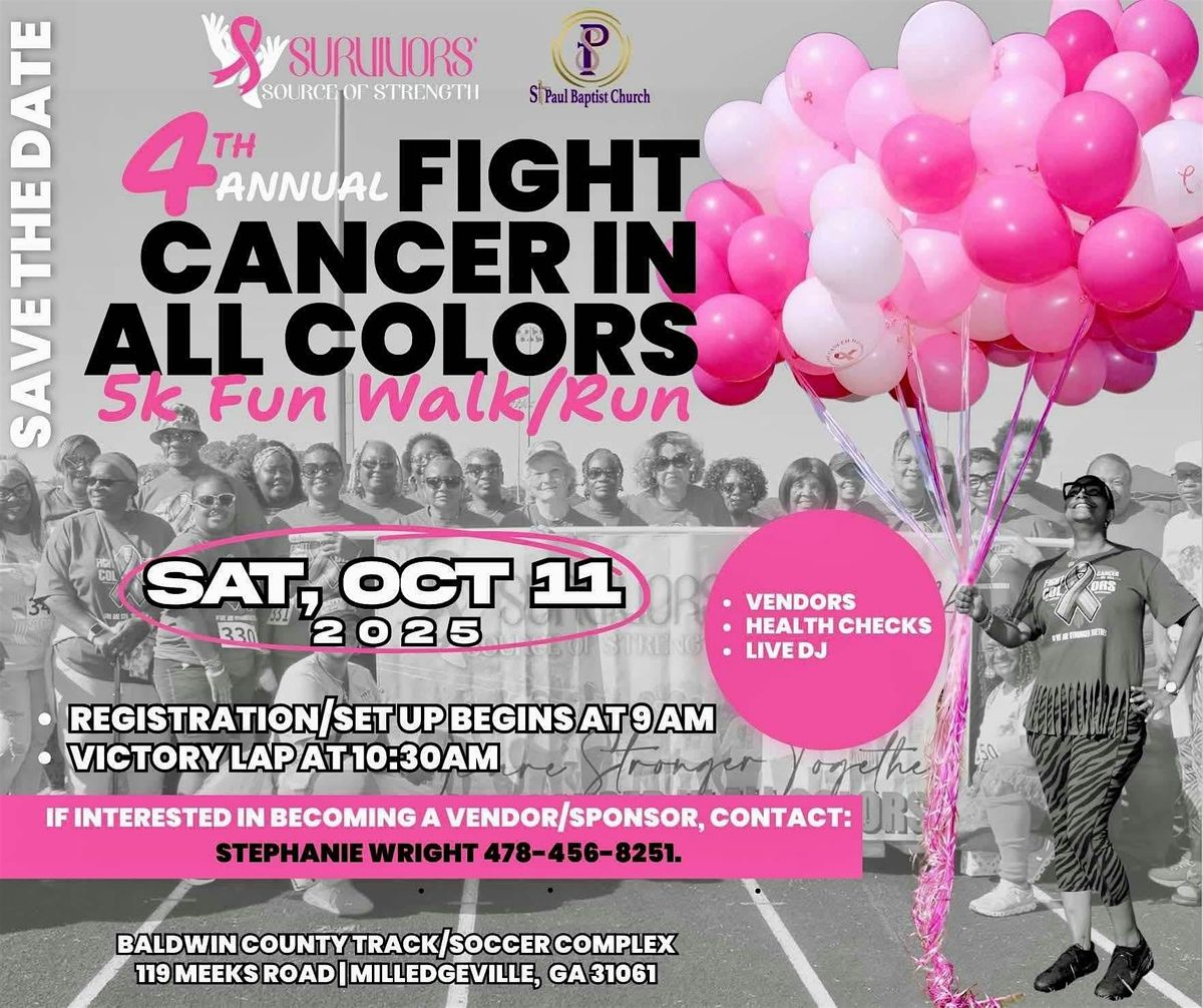 Fight Cancer In All Colors is sponsored by Survivors Source of Strength & Saint Paul Baptist Church to raise awareness and funds to support cancer patients.