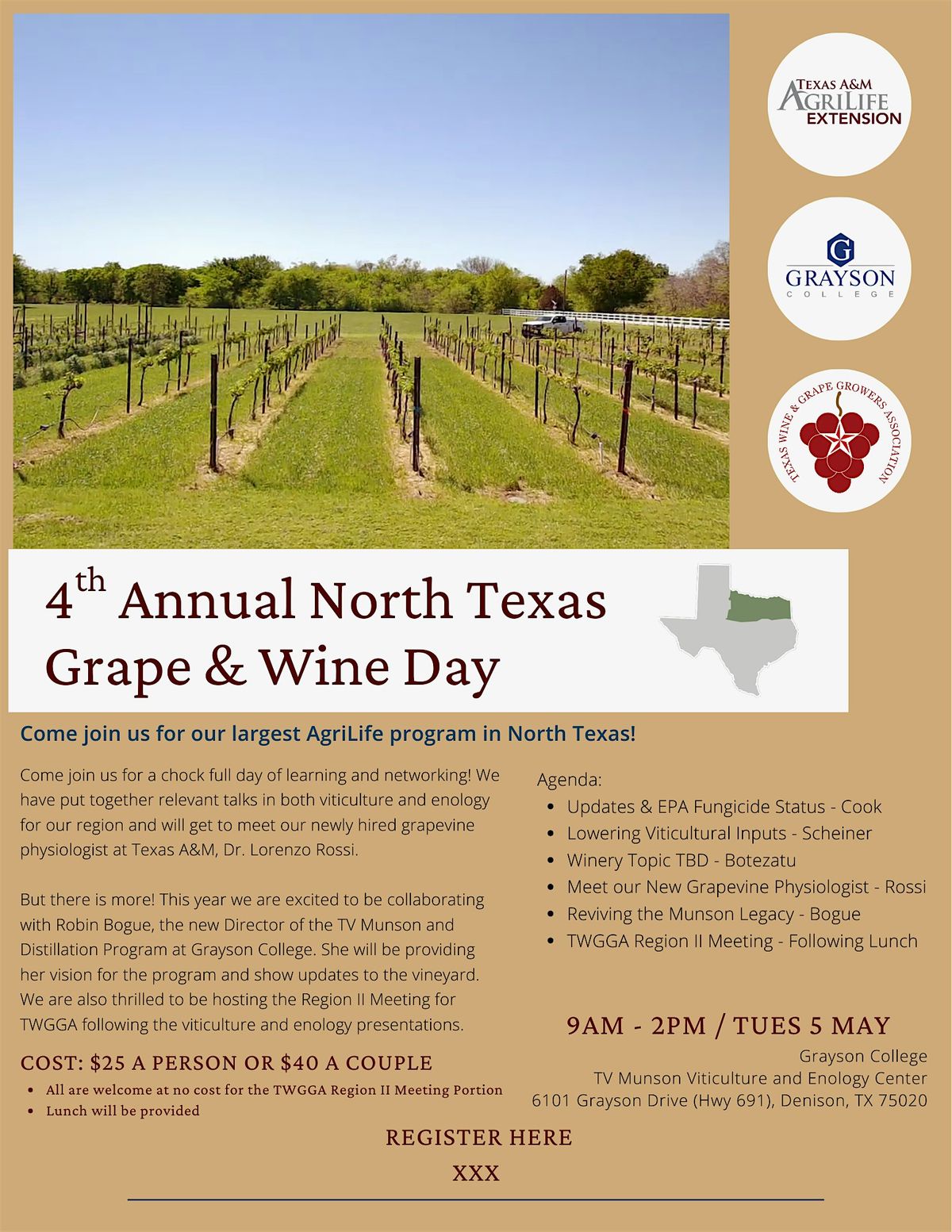 Come join us for our largest viticulture and enology educational program in North Texas!