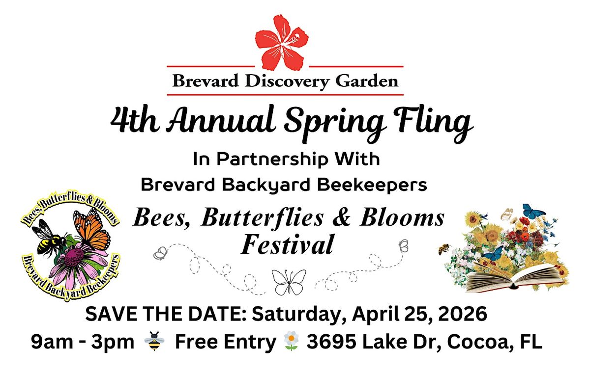 Join us for a free, family-friendly garden festival celebrating plants, pollinators, and Florida-Friendly landscapes! The 4th Annual Spring Fling Plant Sale and Bees, Butterflies & Blooms Festival, is a special collaboration between Brevard Discovery Garden and Brevard Backyard Beekeepers. For the first time, these two popular spring events will come together to create one unforgettable community celebration featuring native plants, pollinator education, hands-on activities, and local vendors.