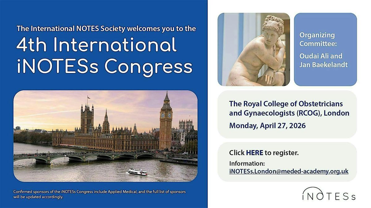 Welcome to the 4th International iNOTESs Congress! Join us to discuss the latest advancements in minimally invasive surgery - a thrilling event filled with groundbreaking discussions and innovative ideas! This in-person gathering will take place at the RCOG, where experts from around the world will share their knowledge and insights. Don't miss this opportunity to network with like-minded individuals and stay ahead of the curve in the field of iNOTESs. Mark your calendars and secure your spot today!
