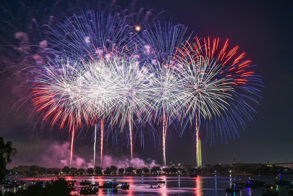 …. aboard a private boat;…. the monuments by moonlight;…. with the best view of the fireworks in Washington, D.C.