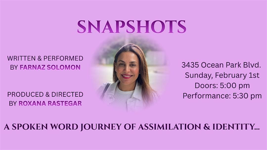 With raw honesty and love, Snapshots invites audiences to reflect on their own stories of belonging, courage and transformation. Come join us for an evening filled with inspiring tales written by Farnaz and directed by Roxanna. From overcoming challenges to embracing new opportunities, these stories will leave you laughing, reflecting and maybe even tearing up. Join us at the intimate Braid space on 3435 Ocean Park Blvd #107 for a night of connection and reflection. Doors will open at 5:00 for wine/mingle and show starts at 5:30 SHARP. See you there!