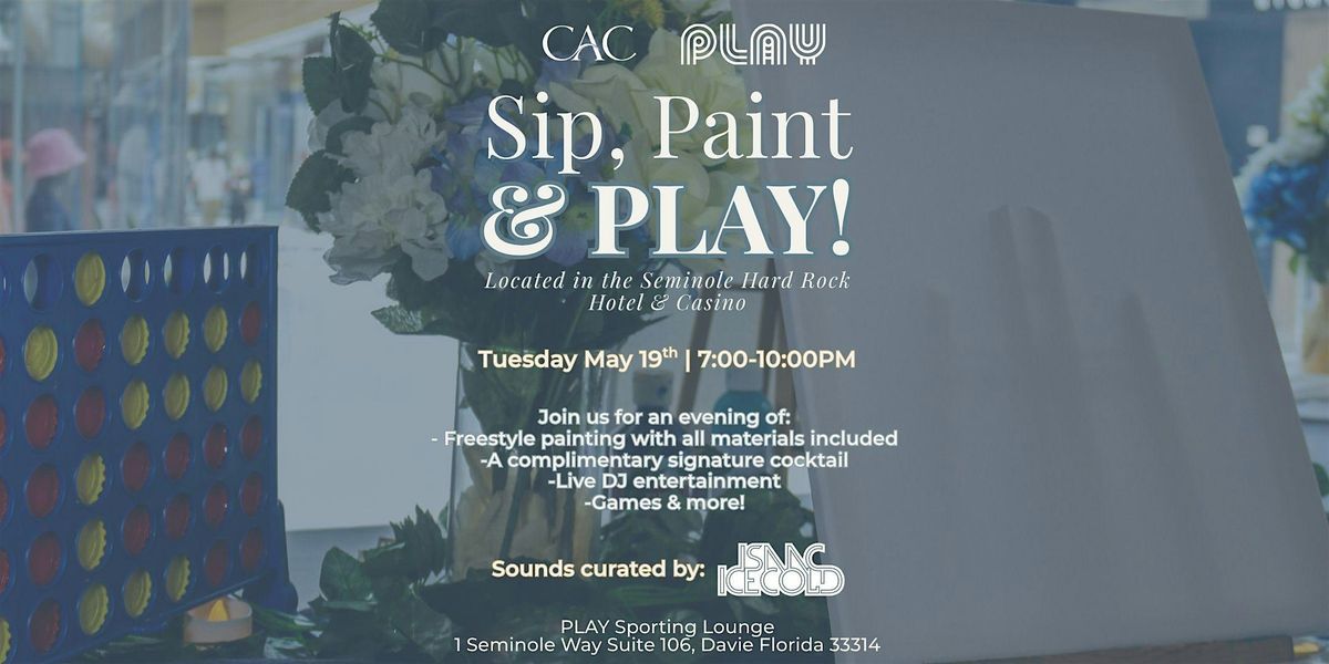 Experience Sip, Paint & PLAY inside the Seminole Hard Rock Hotel & Casino! Join us for an elevated evening of freestyle painting, signature cocktails, light bites, and live DJ entertainment, complemented by interactive games and more.