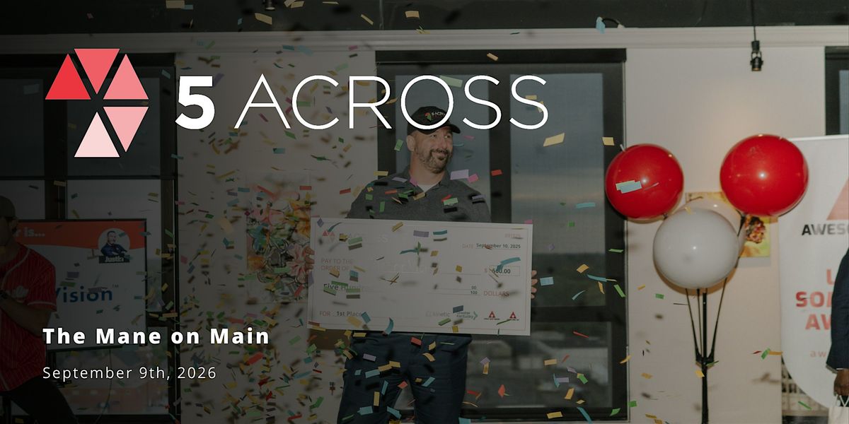 On September 9th, 5 startups are taking the stage for our September edition of 5 Across. Clap and cheer as the 5 companies pitch their businesses Shark Tank-style to the crowd. The winner will receive $500 cash! We will also have a delicious catered meal before the event, networking, and drinks.