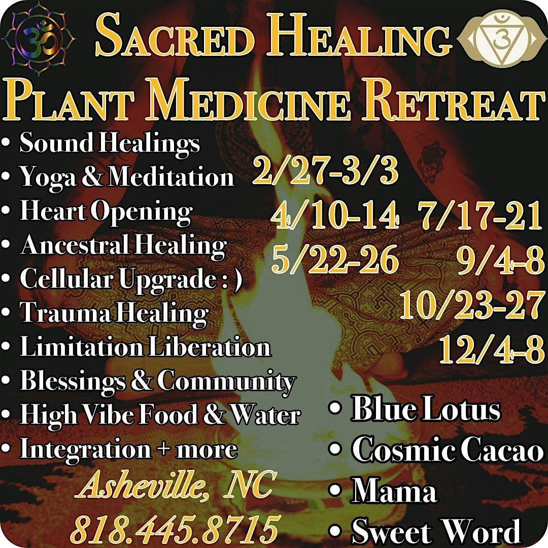 - 4 Plant Medicine Ceremonies: 1. Blue Lotus 2. Cosmic Cacao 3. Mama 4. Sweet Word Ceremony