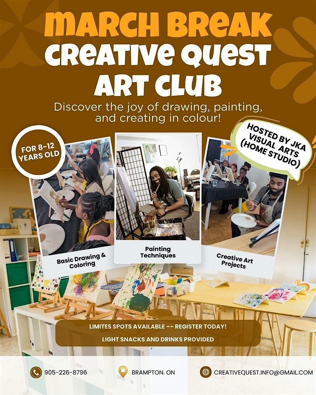 Join us for a super fun and creative 5 day March Break Art Club event at 4 Silver Maple Court on March 16, 2026 at 10:00 AM - 12:00 PM to March 20th, 2026 at 10:00AM - 12:00PM (ET)! Dive into colors, explore your artistic side, and make cool art with friends. Perfect for all ages who love to get creative and have a blast. Don’t miss out on this awesome in-person event where imagination runs wild!