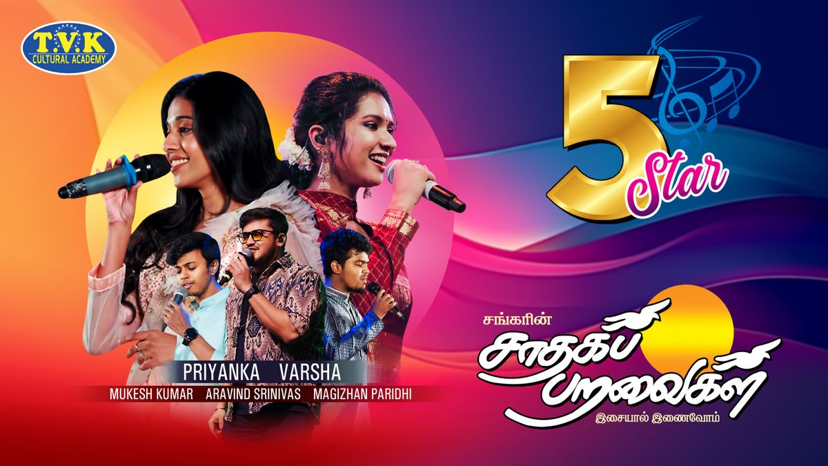 5 Star Musical Extravaganza! ⭐ Get ready for an Evening of Pure Bliss with Shankar's Saadhagapparavaigal!Featuring the incredible talents of Priyanka, Varsha, Mukesh Kumar, Aravind Srinivas, and Magizhan Paridhi!