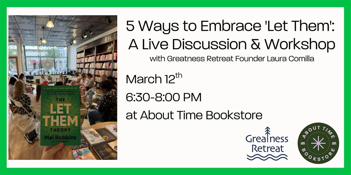 Following Mel Robbins The Let Them Theory Best Seller, Join Laura Comilla, Founder of Greatness Retreat for a Live Discussion & Workshop on the 5 ways to embrace 'Let Them'.