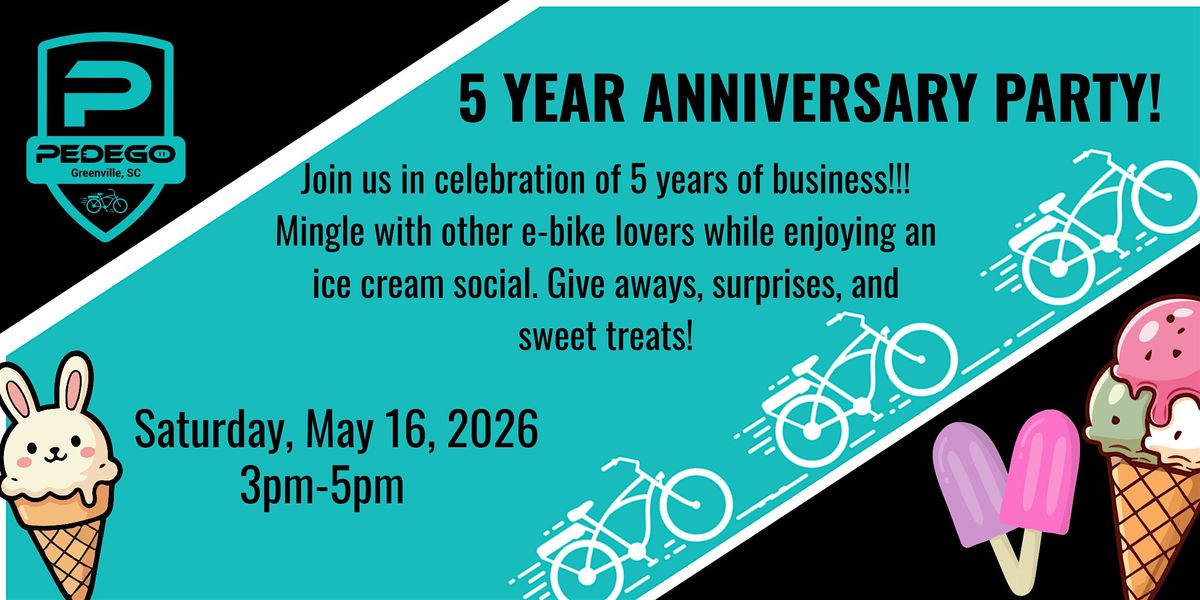 It takes a bike village to keep a small, locally owned and operated bike shop in business. We owe our successes to great staff, great customers, and a whole lot of loyalty. Join us as we celebrate 5 years of business here in Greenville, SC. Mingle with fellow e-bike lovers while enjoying an ice cream social. We'll have give-aways, surprises, and sweet treats for all.