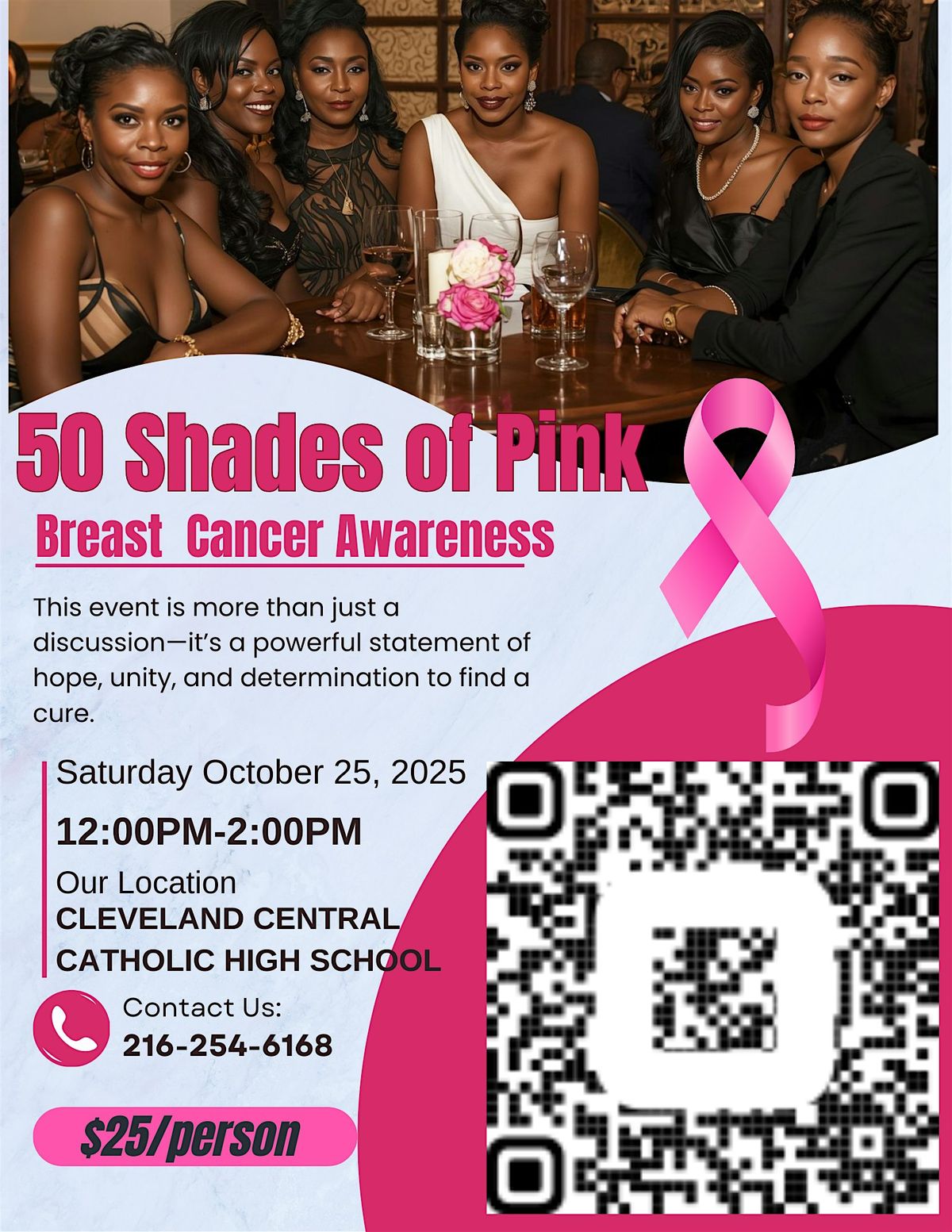 Come join us at Cleveland Central Catholic High School for a day filled with education, support, and empowerment. This event is all about raising awareness for breast cancer and celebrating survivors. Curated by Ms. Lauretha Brown-Malone. We have inspiring speakers, interactive workshops, and fun activities planned for everyone. Let's come together to show our support and spread hope. Wear your pink attire and get ready to make a difference!