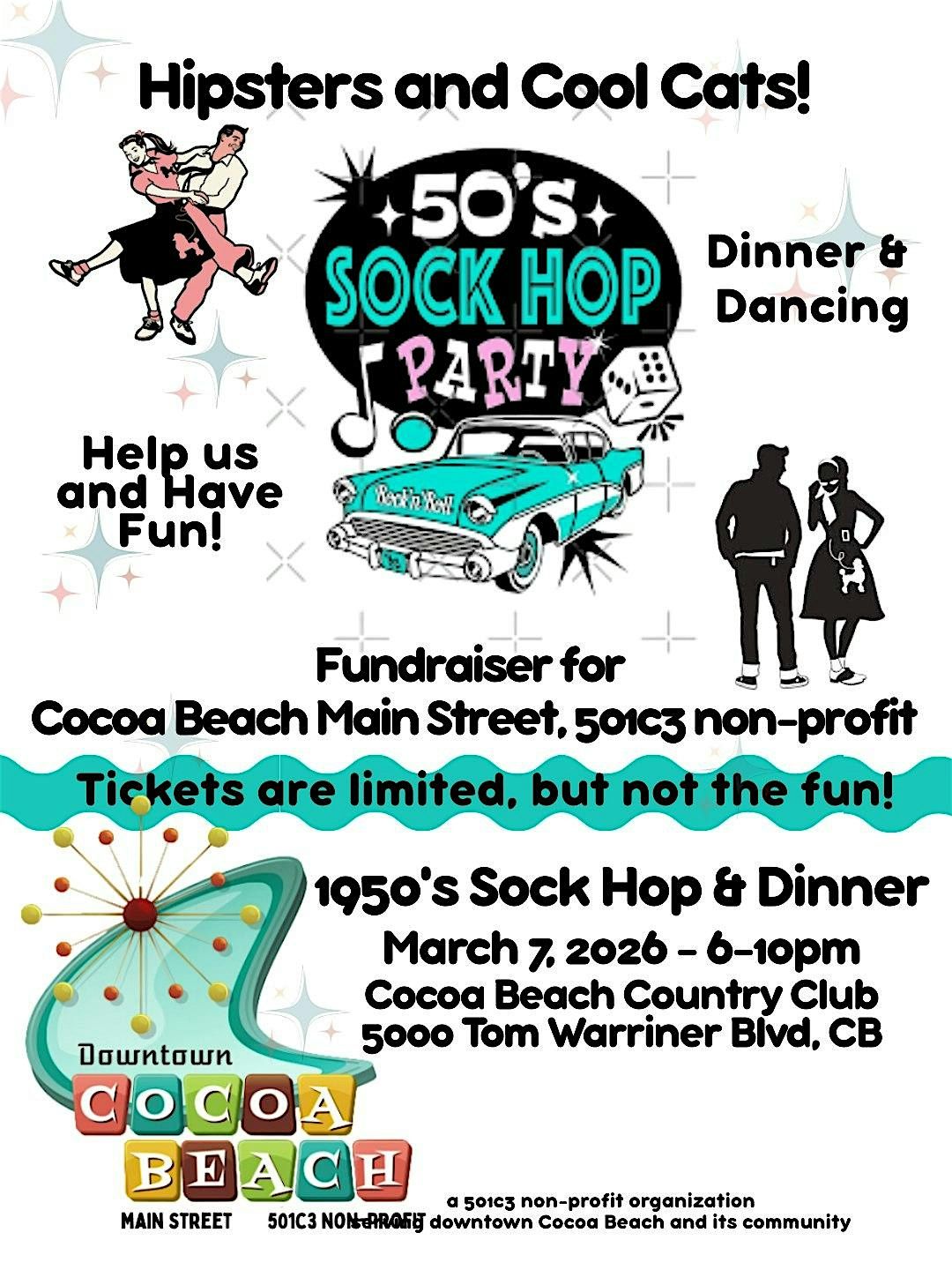 50's Sock Hop Dinner & Dance Fundraiser for Cocoa Beach Main Street 501c3