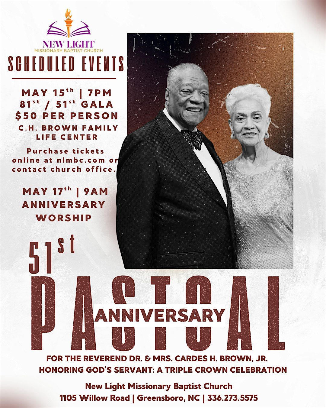 Join us as we honor our Pastor and First Lady for 51 Years of Pastoral leadership, love, and loyalty.