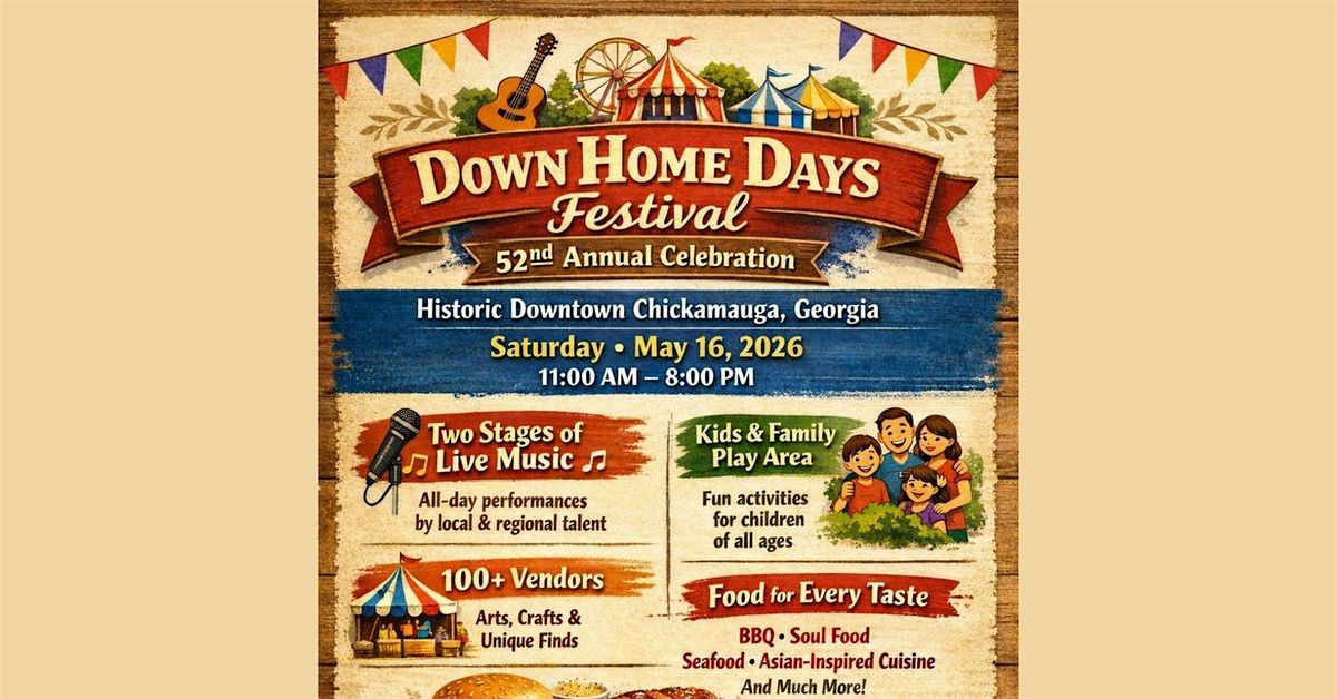 Come early, come hungry, and come ready for a full day of wholesome, small-town fun. Bring the whole family and experience why Down Home Days has been a Chickamauga tradition for over five decades!
