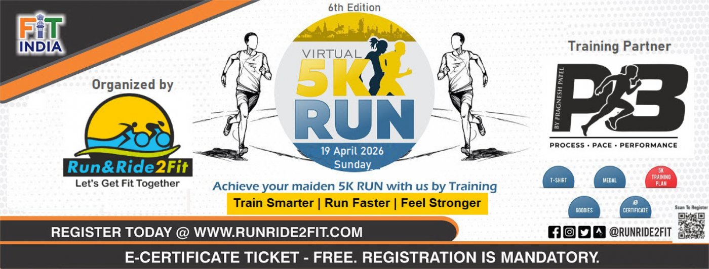 We're planning to organize 6th Edition of 5K Training RUN on 19th April 2026 to inspire the relatives or friends of yours (who haven't run 5k) to achieve their maiden 5k RUN & by that we want to inculcate the RUNNING as a lifetime habit for better Health & Fitness. With this event, we aim to provide the aspiring runners an opportunity to achieve their maiden 5k RUN and connect them to the Runners' world. In addition to this, Experience Runners can give a shot to get his/her best performance for 5k.