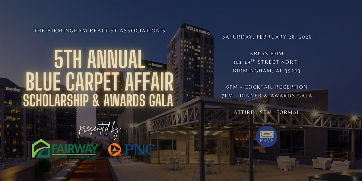 Welcome to the 5th Annual Birmingham Realtist Scholarship & Awards Gala! Join us at Kress BHM on February 26, 2026 at 6:30 PM as we celebrate Realtist achievements and recognize our strategic & community partners. Get ready to walk the blue carpet and mingle with fellow real estate professionals. This event is your chance to network, have fun, and make lasting connections. Don't miss out on this exciting opportunity to shine and enjoy a memorable evening. See you there!