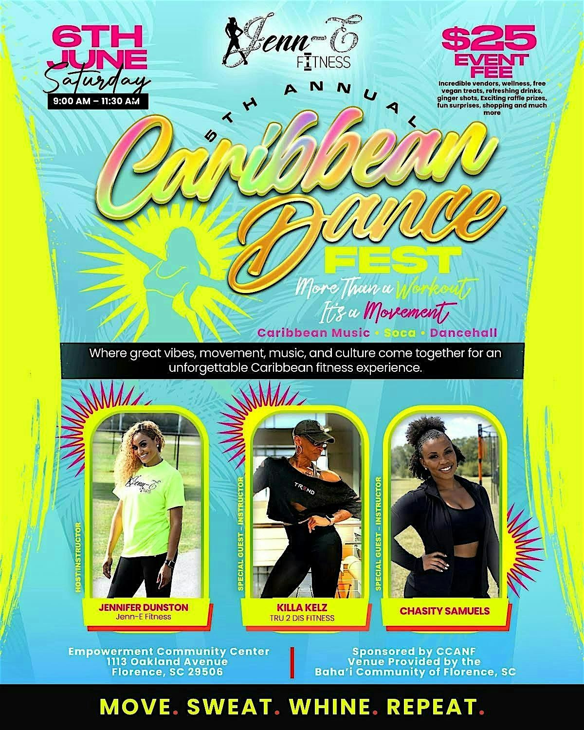 SC!!! Jenn-E Fitness Caribbean Dance Fest is back! High-energy dance fitness with great music, nonstop movement, and a feel-good vibes! ✨