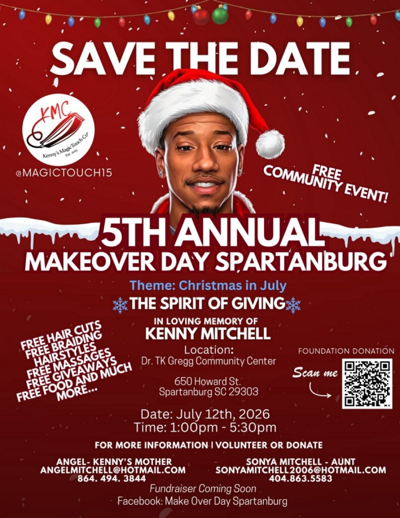 Free Community Event in loving memory of Kenny Mitchell. Free Haircuts, Free Brading Hairstyles, Free Food, Free massages, Free clothes and shoes, Free giveaways, and much more! Also, now providing Barber Scholarships to eligible students!