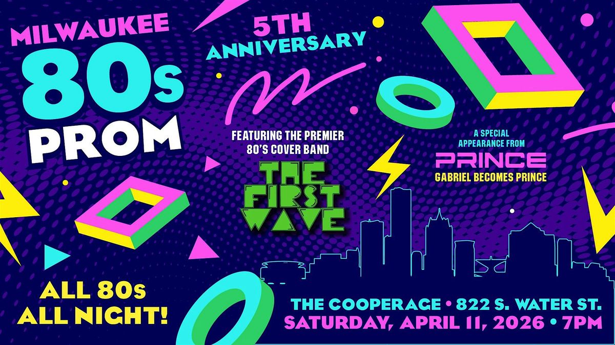 Join us at The Cooperage for the 5th Anniversary of Milwaukee's 80's Prom!Calling all Heathers, Veronicas, JDs, and Rams!We are bringing the 80's Back To The Future with the premier 80's new wave cover band: 'The First Wave'ALL 80's/ALL NIGHT: an immersive experience! Dancing, a prom king and queen will be crowned, a dedicated prom photo area to get your prom pic, and yes! PRINCE makes a special appearance (aka Gabriel: the world's most elite Prince tribute).Join us for a night of retro fun!
