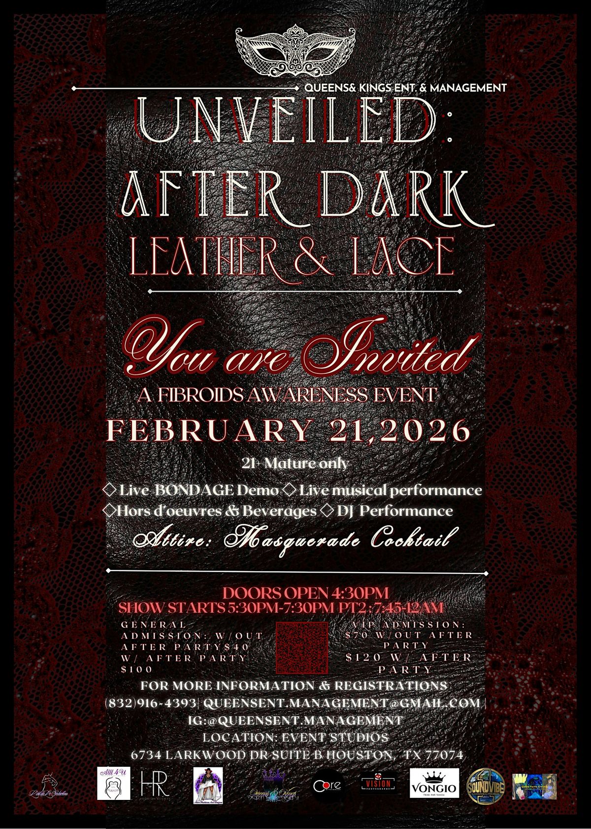 Join us for an electrifying evening of high style and heartfelt purpose—a celebration that fuses the daring edge of leather with the delicate grace of lace. These textures tell a deeper story: the quiet strength and resilient beauty of women living with fibroids. Silent warriors. Unstoppable forces.