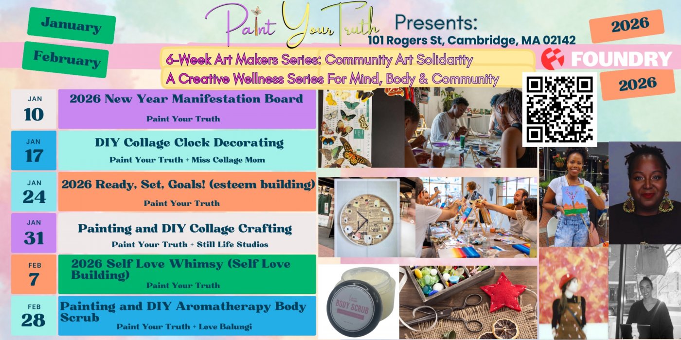 Kick off the 6 Week Art Makers Series with grounding our thoughts, goals and desires with solo-led experience Artist and facilitator Vie Ciné. This session focuses on creating our own manifestation vision board via painting. (All materials provided.)
