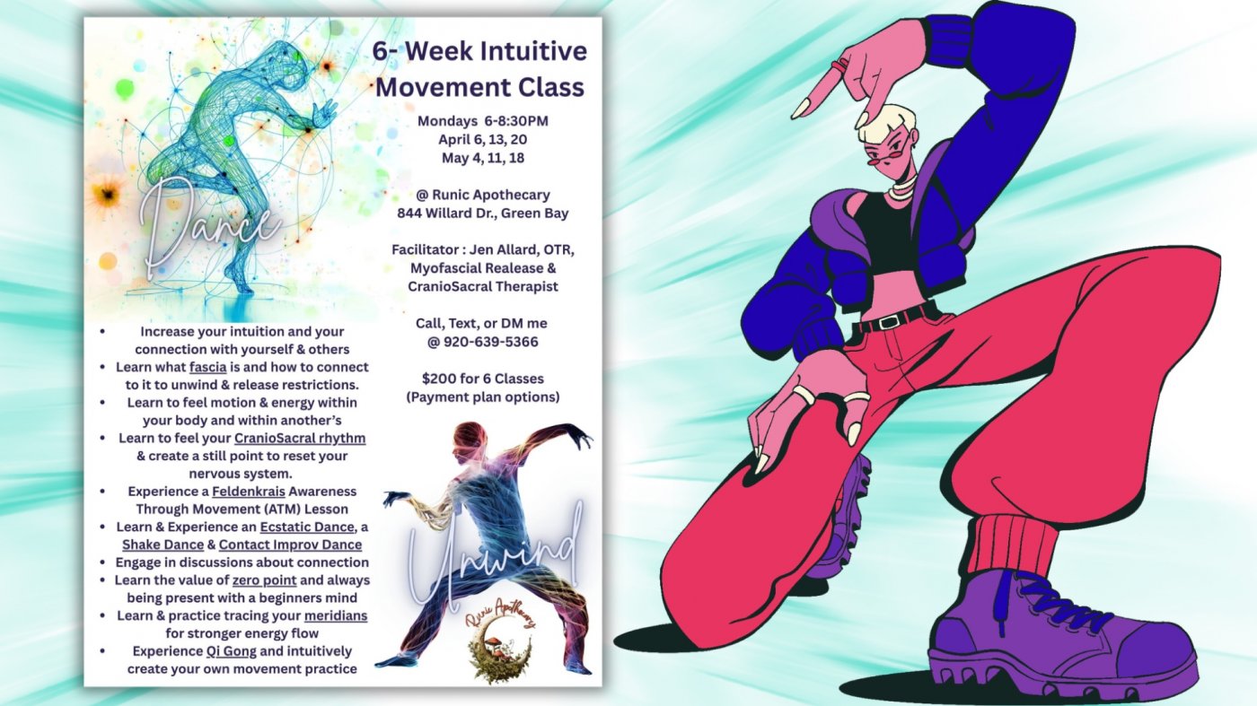 Join Jen Allard (OTR, Myofascial Release & CranioSacral Therapist) as she brings an incredible 6-week intuitive dance and movement class to Runic Apothecary!