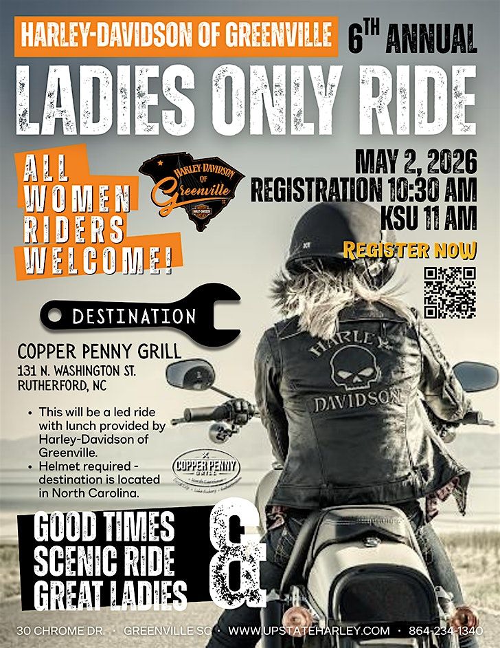 We’ll roll out from Harley-Davidson of Greenville and make our way to Copper Penny Grill in Rutherfordton, NC, a favorite stop with great food and a welcoming atmosphere. Whether you’re a seasoned rider or newer to group rides, this event is relaxed, supportive, and designed just for you.