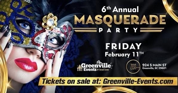 Greenville Events & Social Scene, the creators of fantastic events like Greenville’s White Party, The BIGGEST Halloween Party, Greenville’s Tacky Sweater Party and many more, are excited to invite you to our 6th Annual Masquerade Dance Party at Zen—the AUTHENTIC and ORIGINAL !!