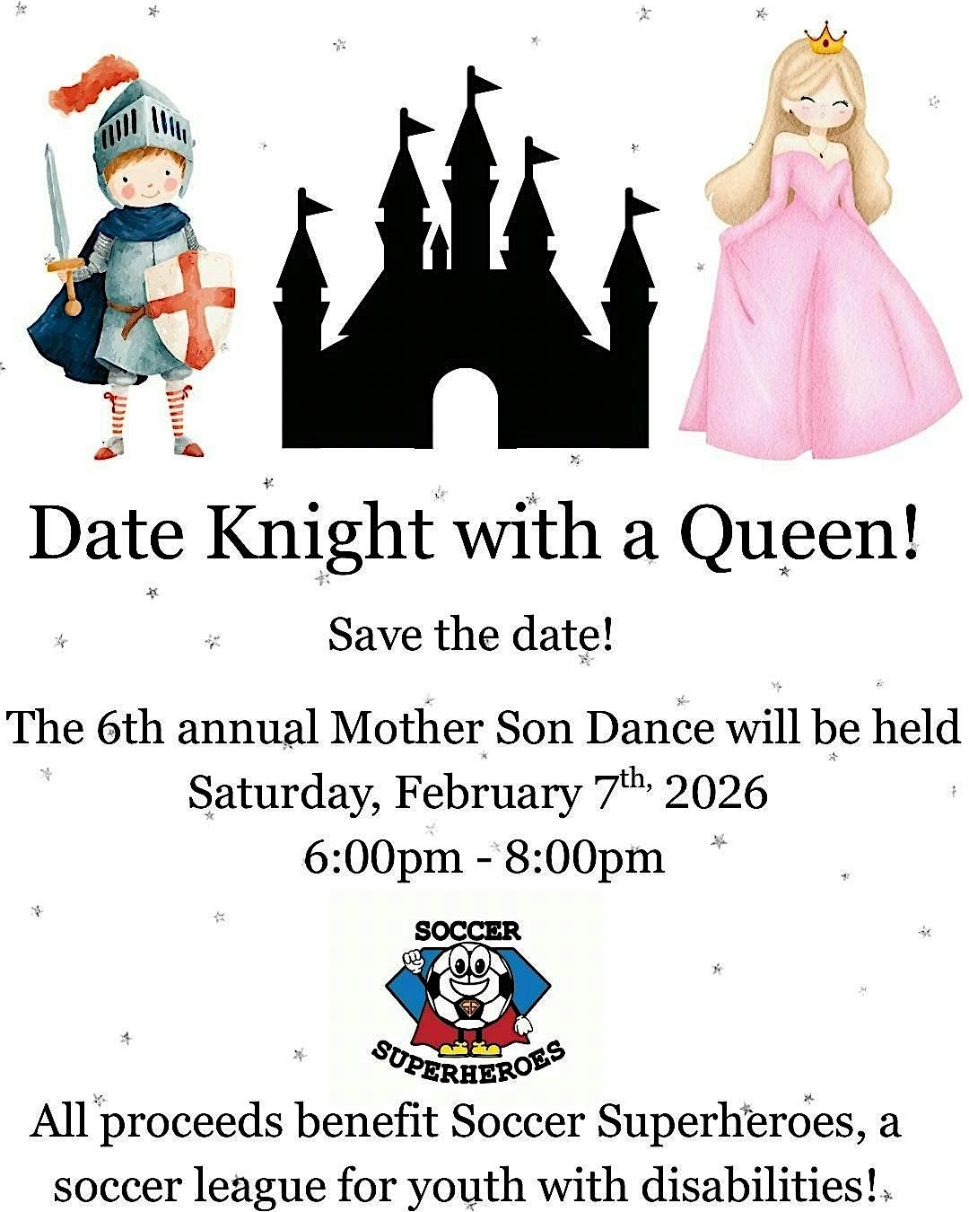 Get ready for a night full of laughs, dancing, and unforgettable memories at our 6th Annual Mother Son Dance! This in-person event is all about celebrating the special bond between moms and their sons. Put on your dancing shoes, enjoy great music, and share moments that'll last a lifetime. Don’t miss out on the fun and connection — we can’t wait to see you there! All proceeds fund Soccer Superheroes, a local soccer league for children, youth and teeanagers with special needs.