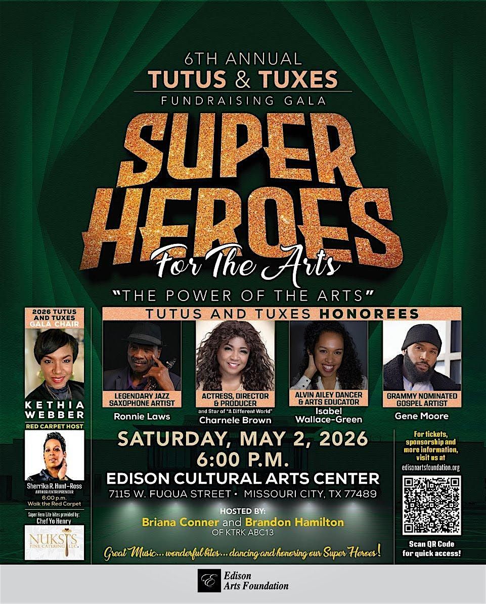 The Edison Arts Foundation will hold its 6th annual “Tutus and Tuxes” Fundraising Gala, Saturday, May 2, 2026, 6:00 p.m. at the new Edison Cultural Arts Center, 7115 West Fuqua, Missouri City, Texas 77489. The program will honor some of Houston’s prestigious, most notable artists and arts advocates, as well as highlight Edison Arts Foundation’s impactful programs and bold transformative future endeavors.