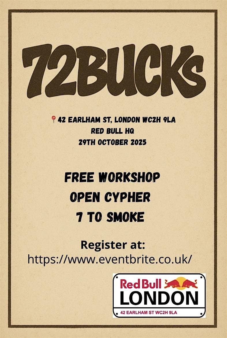 7:30PM: 72Bucks concept. The three judges will select 8 dancers from the cypher for a 7to smoke.