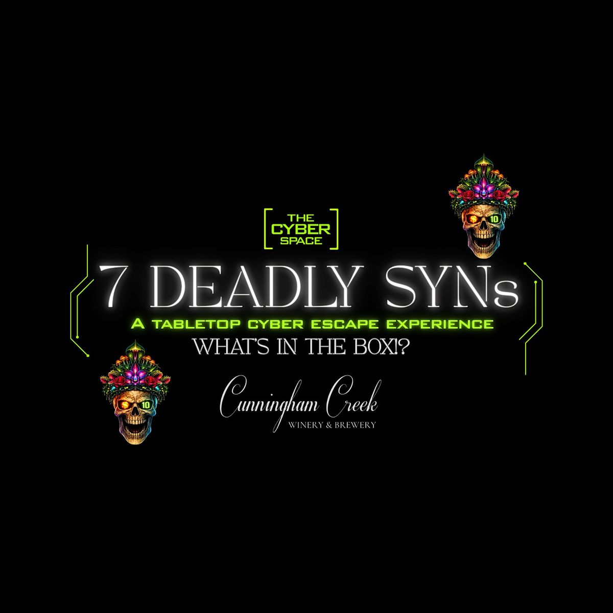 In this special edition of our tabletop escape experience 7 Deadly SYNs, you’ll uncover clues, crack codes, and work together to unlock what’s inside the box before time runs out.