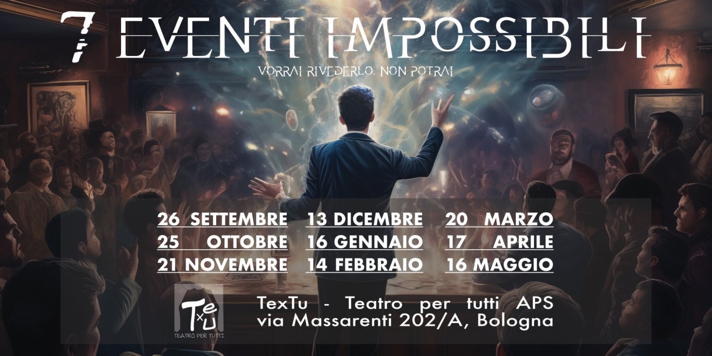 Attenzione a scanso di equivoci lo ripetiamo: non potrete rivedere questo spettacolo. Se avete partecipato ad un'esperienza precedente di "7 Eventi impossibili" e vi presenterete con un biglietto per questa data non sarete comunque ammessi in sala.