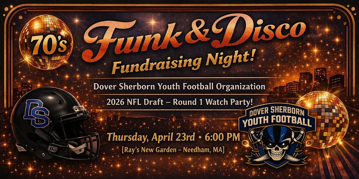 Step into a night of football, flavor, and funk as Dover Sherborn Youth Football brings you a 70’s-inspired Draft Night celebration!
