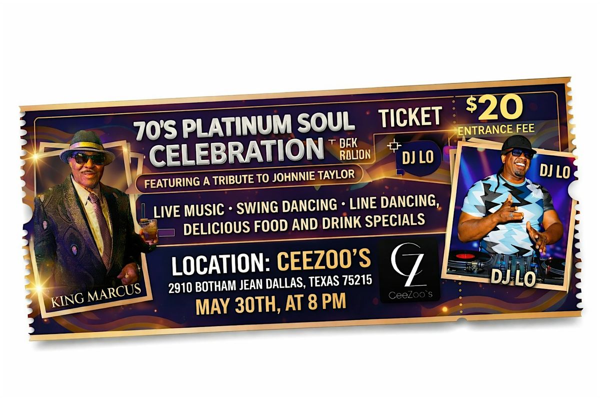 Get ready to Groove at Our 70's Platinum Soul Celebration! Join us in person for a night filled with a LIVE Tribute to Johnnie Taylor. Classic Soul, Swing Dancing, and Line Dancing! Dress up in your 70's Style and let's have some Fun celebrating 70's Style. Don’t miss out on the ultimate throwback party where soul music reigns supreme!