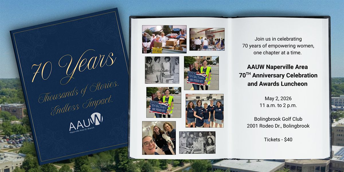 The Naperville chapter of AAUW was founded in 1956. We’ll highlight a legacy of community activism, book sales and programming, while learning about this year’s accomplishments and future plans. This event is our annual meeting; we promise the smiles will be many and the business “chapter” of the meeting will be short.