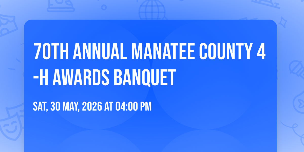 Manatee County 4-H will honor 4-H members for their achievements during the 2025-2026 4-H year at the annual Awards Banquet on May 30th starting at 4:30 p.m. in Veterans' Hall at the Manatee County Fairgrounds., 1402 14th Ave W, Palmetto, FL 34221.