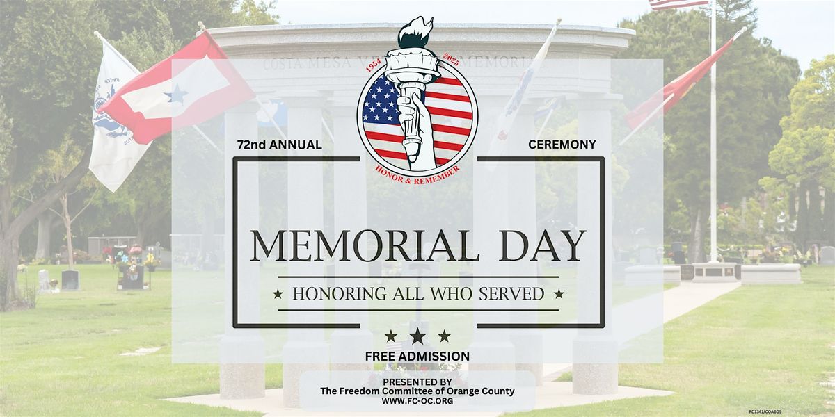 Join the Freedom Committee of Orange County for the 72nd Annual Memorial Day Ceremony on Monday, May 25th, 2026, at 11:00 AM. This free, family-friendly event honors the brave men and women who made the ultimate sacrifice in service to our nation.