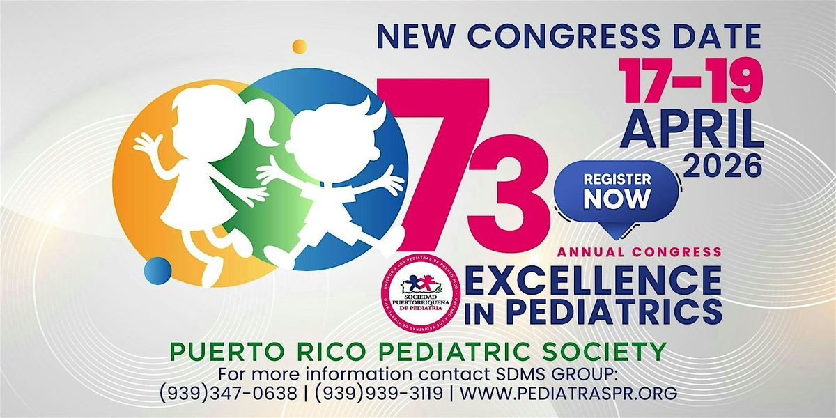 It is with great enthusiasm that we plan to celebrate our 73rd Annual Congress: "Excellence in Pediatrics" on April 17- 19, 2026 at the Sheraton Convention Center in San Juan, Puerto Rico.