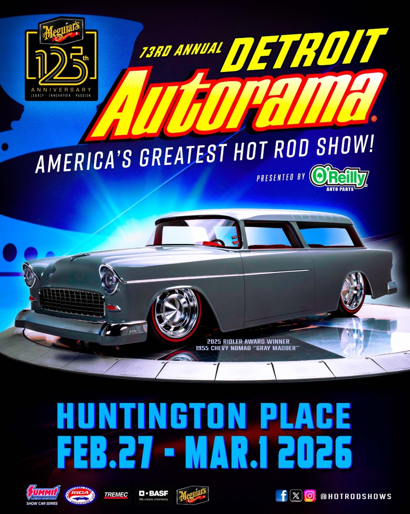 Detroit Autorama is produced by Championship Auto Shows. Hosted by the Michigan Hot Rod Association. Sponsored by Meguiar's. Presented by O’Reilly Auto Parts.